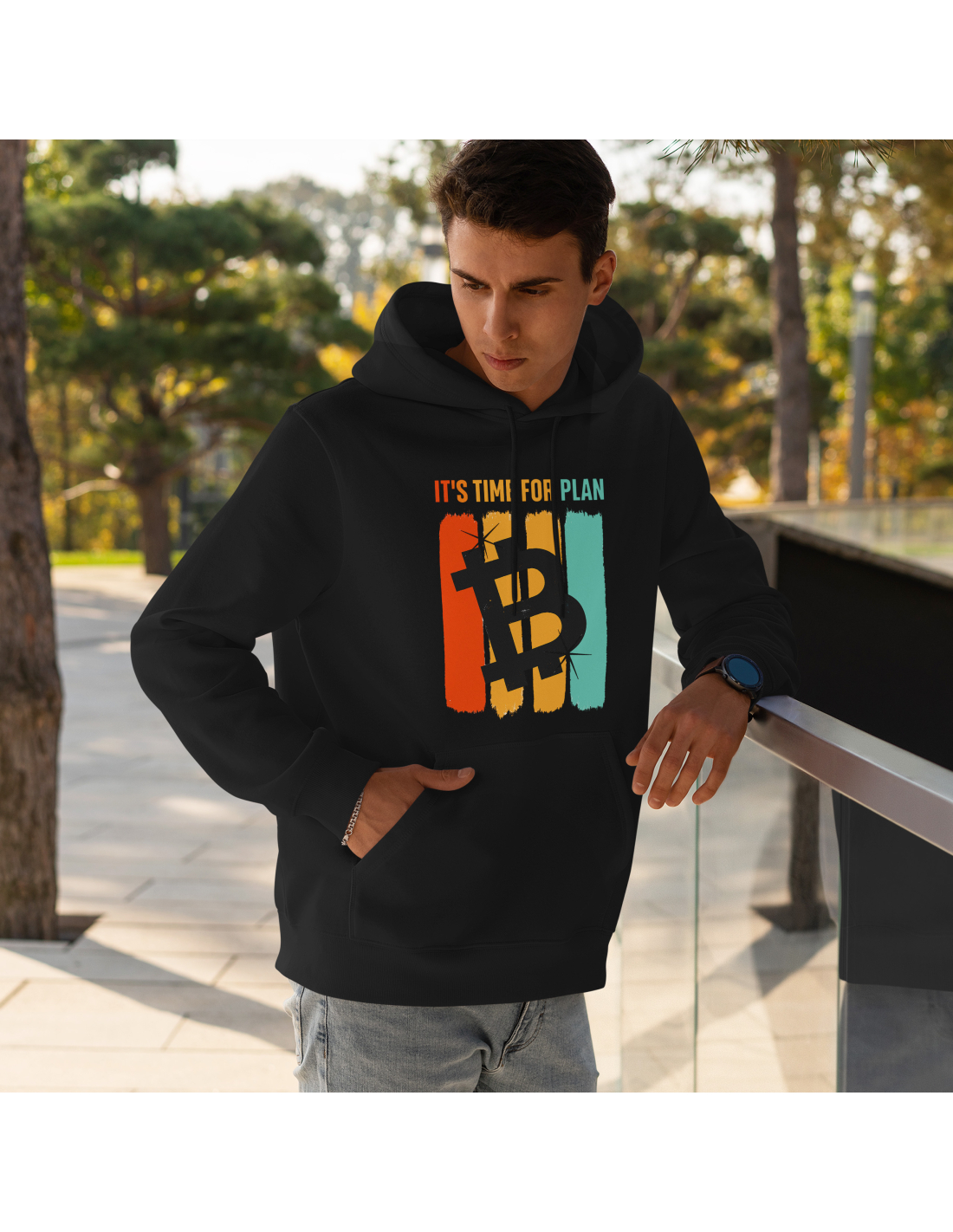 Bluza Męska Bitcoin "It's time for plan" Czarna | 100% Bawełna