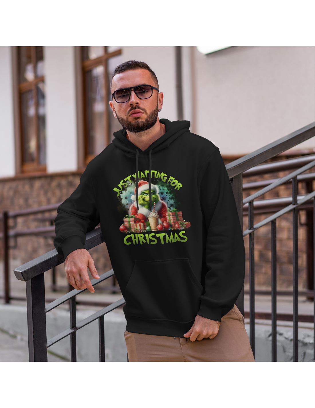 Bluza Męska świąteczna "Grinch - Just waiting for christmas" Czarna | 100% Bawełna