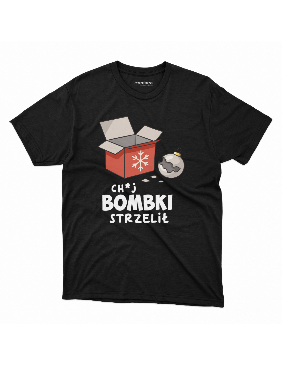 Koszulka Męska świąteczna "No i ch*j bombki strzelił" Czarna | 100% Bawełna